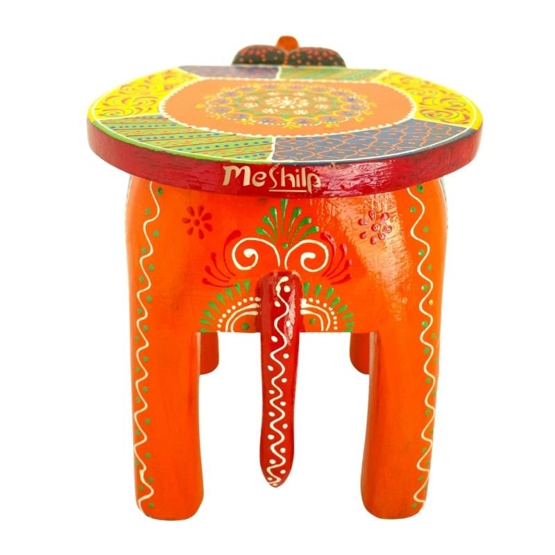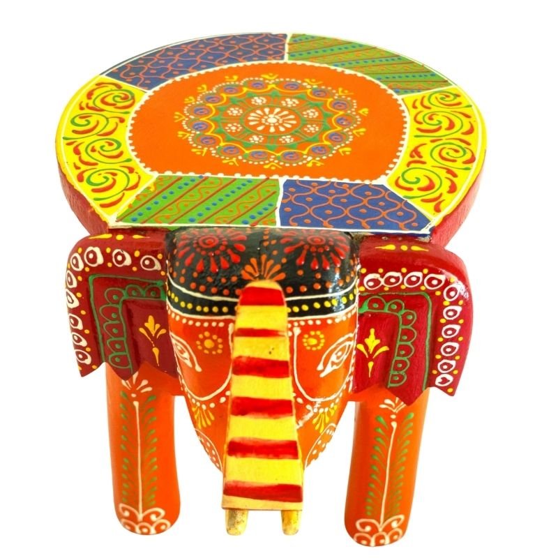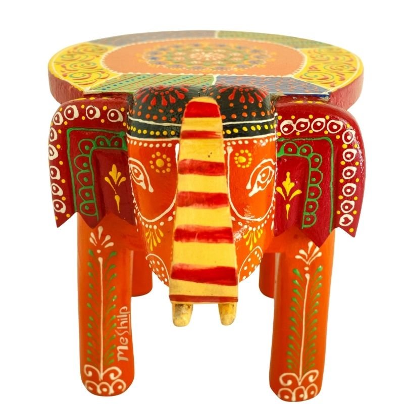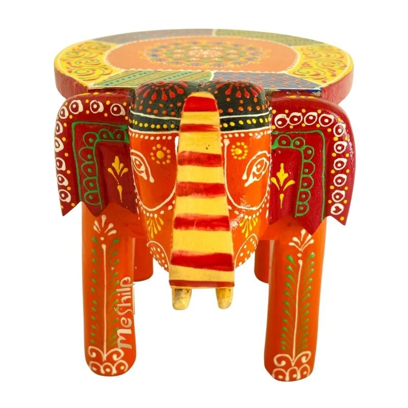 Meshilp Beautiful Multicolored Decorative Wooden Elephant Stool