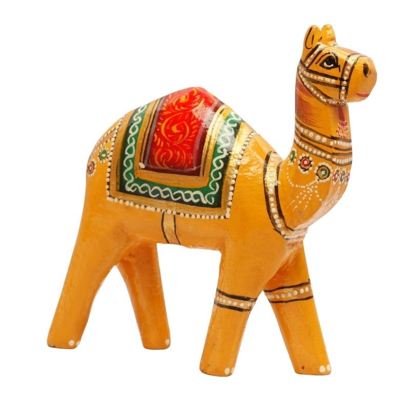 Meshilp Wooden Decorative Hand Embossed & Painted Camal Statue