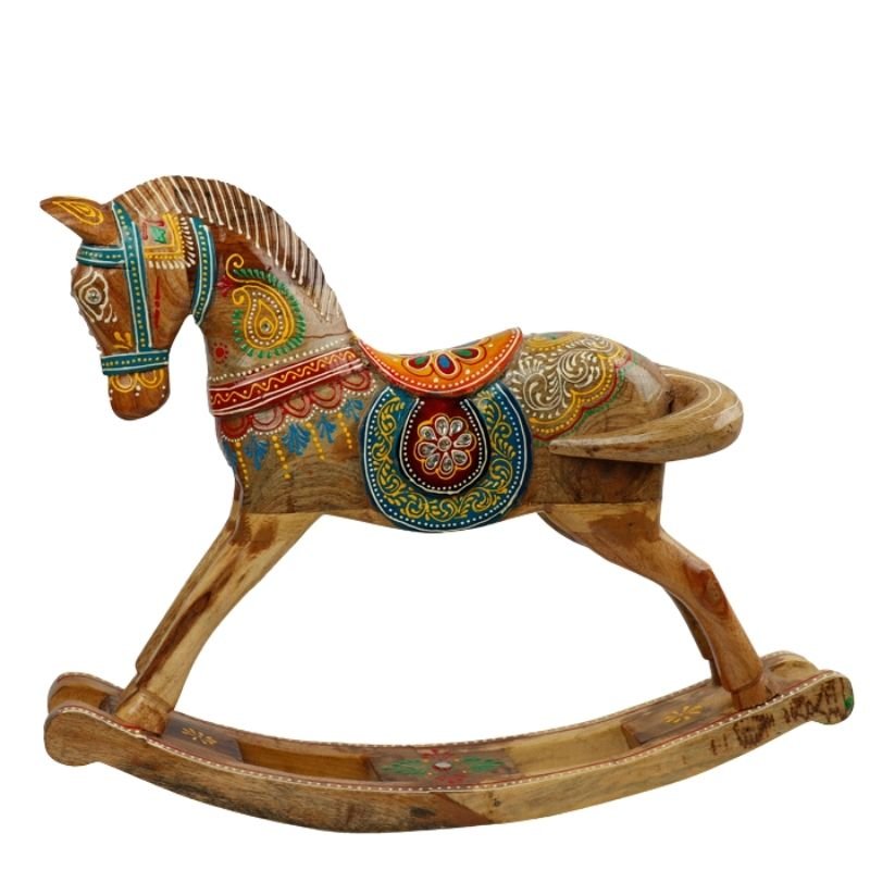 Meshilp Wooden Decorative Hand Embossed & Painted Rocking Horse