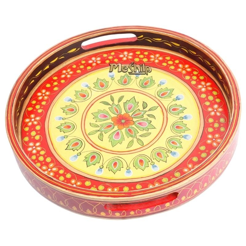 Meshilp Mango Wood Multicolored Round Serving Tray
